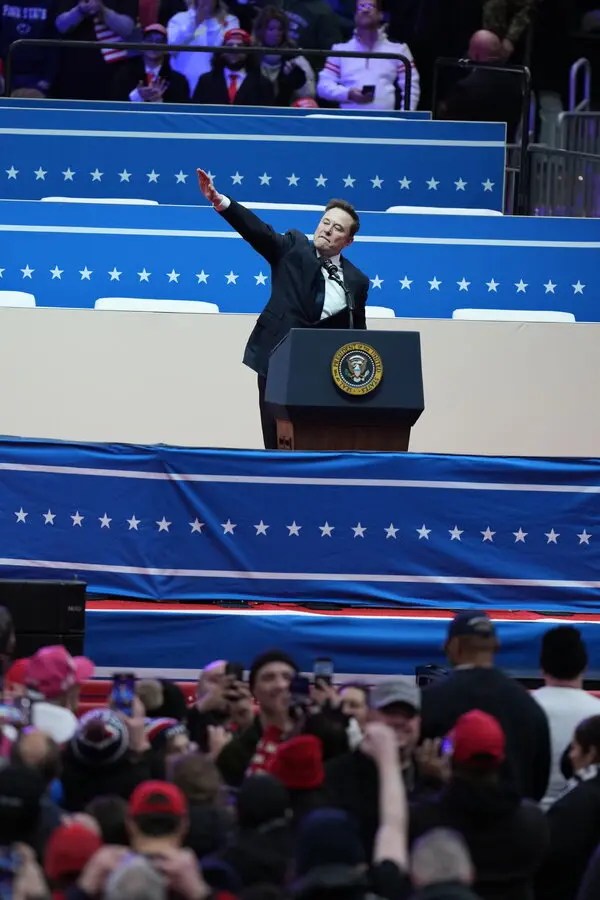 The first verse of the song introduces a world dominated by corporate oligarchs and tech moguls, with specific mentions of figures like Elon Musk and the imagery of “Nazi salutes”. This reflects a growing concern in political theory about the fusion of corporate and governmental power, often referred to as technocratic fascism. The rise of oligarchs like Musk, who are seen as leveraging both their wealth and technological influence to shape public policy, raises questions about the limits of corporate power and the potential for authoritarian control.